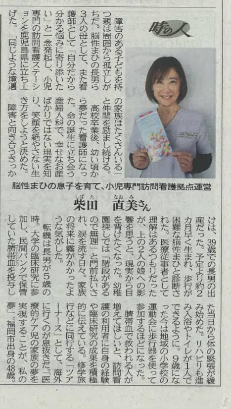 このたび、南日本新聞にて弊社柴田が「鹿児島 人物語」と言う記事でご紹介いただきました。